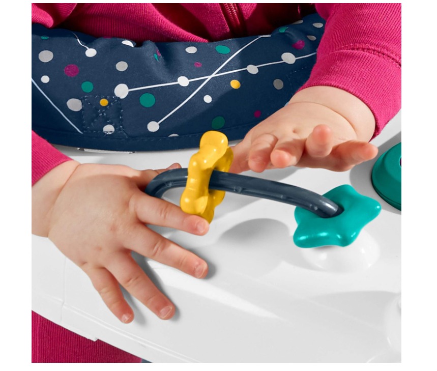 What really caught my eye was the adorable puppy design and the engaging mobile. My grandson loves watching the little animals spin around. It keeps him entertained and happy, which makes babysitting him a joy. The seat cover is also very easy to remove and wash, which is a must for babies.